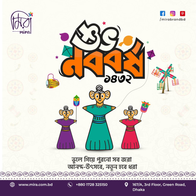 এই পহেলা বৈশাখে মিরা চায়, আপনি শুধু নতুন পোশাকে নয়—নতুন আশায়, নতুন স্বপ্নে, নতুন ভালোবাসায় নিজেকে রাঙিয়ে তুলুন।