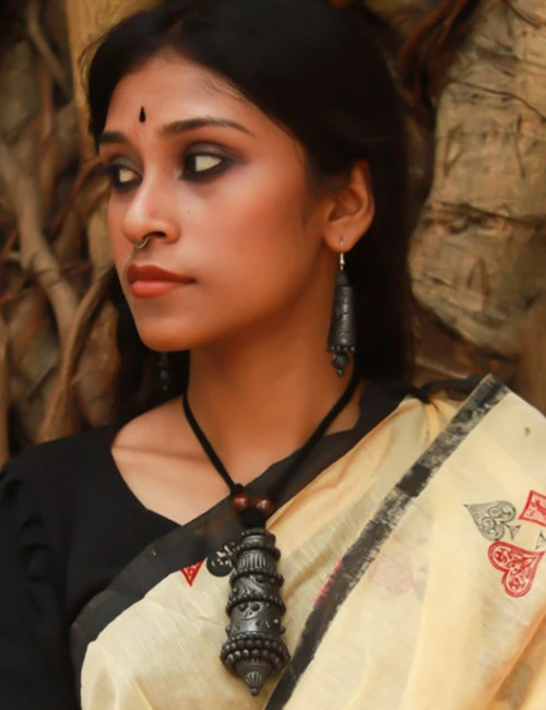 Elevate your style with Mira's exquisite Handmade Terracotta Neckpiece, a shining embodiment of our brand's dedication to merging artistic craftsmanship with authenticity. Crafted with unwavering attention to detail, this neckpiece is not just an accessory; it's a statement of your individuality and your appreciation for quality and artistry.